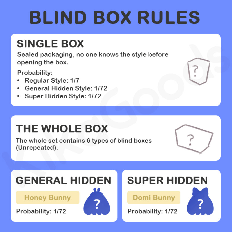 - For the same blind box product across multiple orders, we cannot guarantee there will be no duplicates.