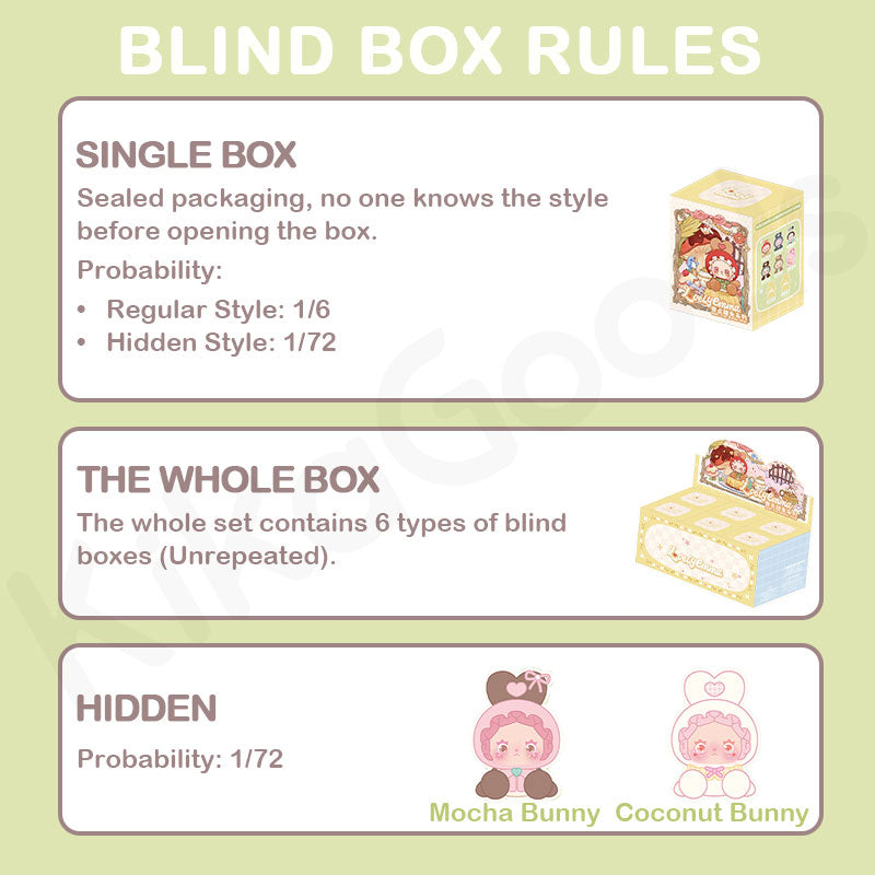 3. The production ratio of hidden mini-figures (Mocha Bunny, Coconut Bunny) is 1/72.