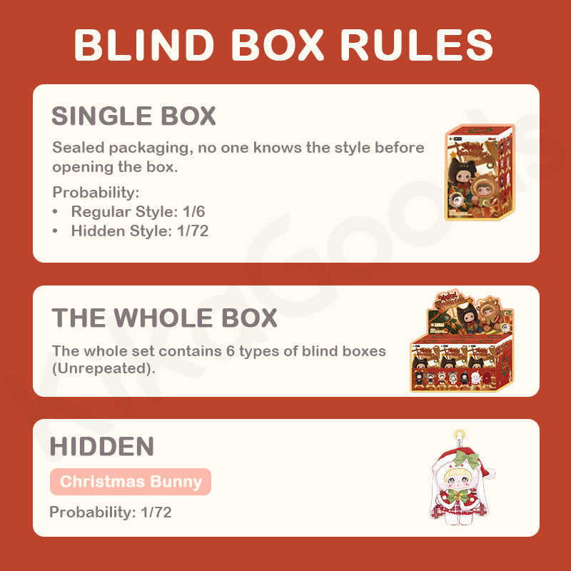 3. The production ratio of general hidden mini-figures (Christmas Bunny) is 1/72.